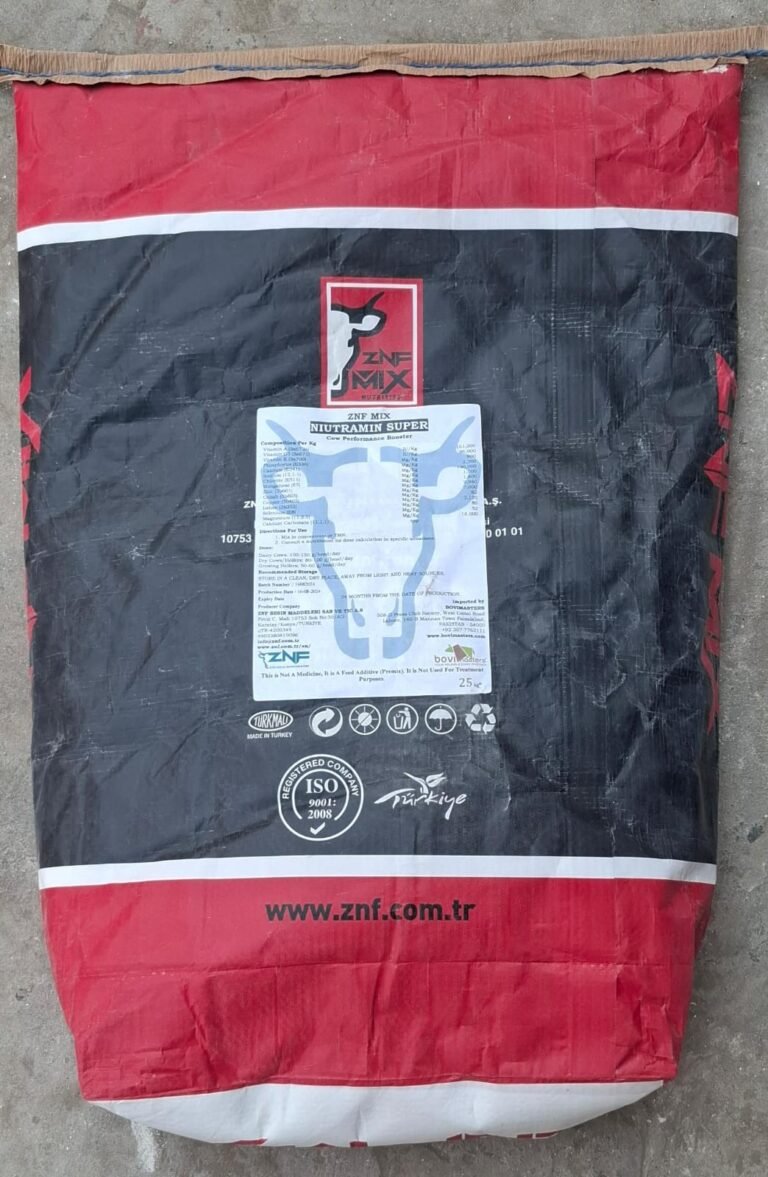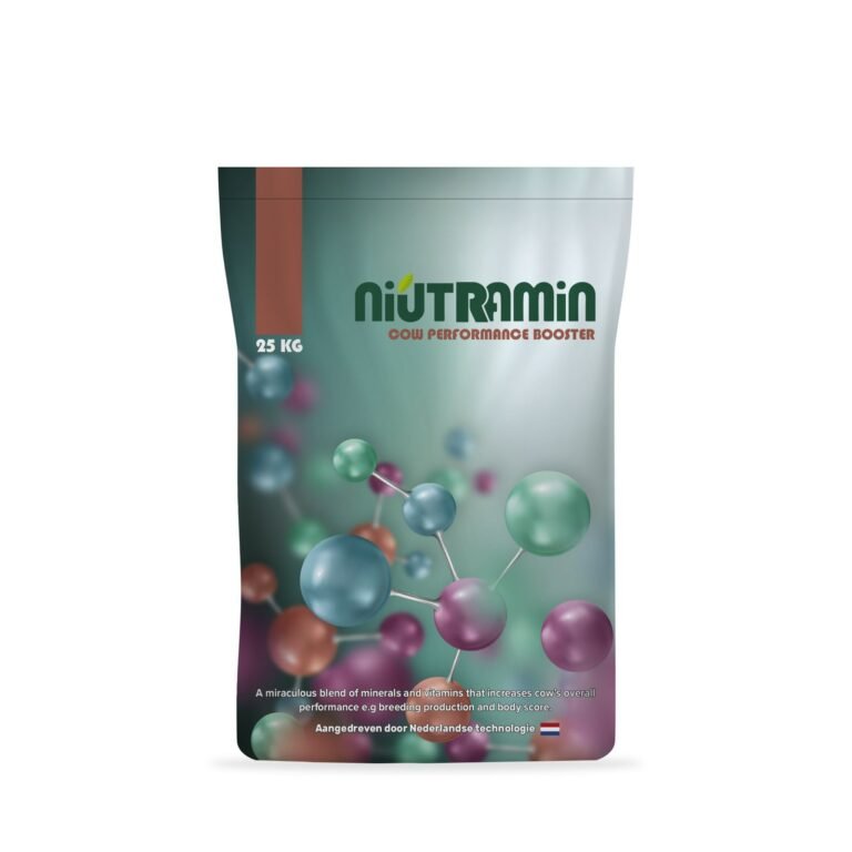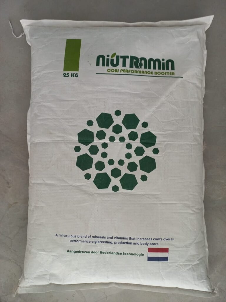 Niutramin Super is a high-quality feed additive that helps improve animal nutrition. It is a blend of essential minerals that helps dairy cows fight diseases while increasing milk production. Classified as a mineral based (inorganic) ingredient, it provides nutrients that support growth, immunity and overall health in cows and buffalo. Niutramin Super supplies quality mineral products from reliable sources, ensuring consistency and compliance with quality standards. By ensuring animals receive balanced nutrition, Niutramin super improves feed efficiency and metabolic functions. This makes it a trusted choice for farmers seeking effective mineral supplementation in daily feed programs for their dairy animals