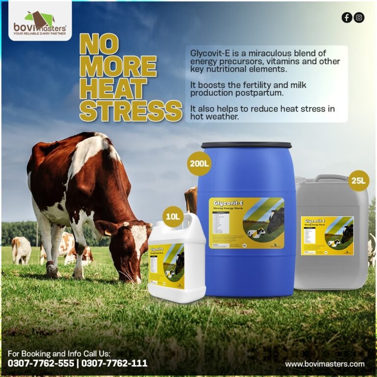 Glycovit-E Liq is an effective, fast-acting energy solution that supports fresh and close-up cows during periods of heat stress. It contains vitamins, minerals and rumen-protected fat to increase milk production and fat percentage in dairy animals. Providing a concentrated energy source for high-producing livestock, it helps restore milk production after illness or metabolic stress. Glycovit-E Liq supports early lactation, prevents metabolic disorders in fresh cows, and helps them cope with heat, maintain milk production and recover quickly after calving. Suitable for dairy cows and buffaloes, it also improves body condition, stamina, and weight gain.