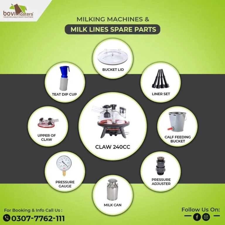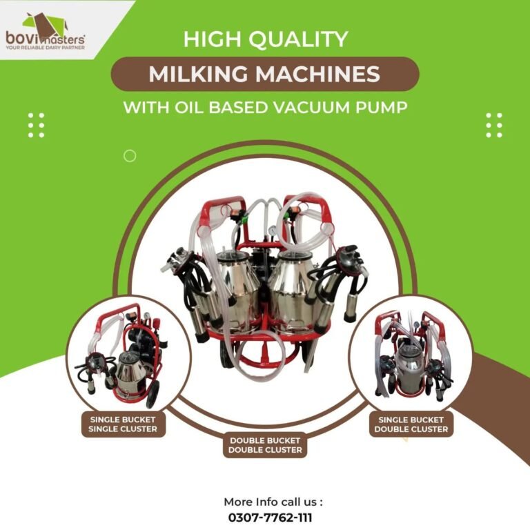 We provide high-quality milking machines designed for efficient milk extraction from dairy animals, especially cows and buffalo. These devices can greatly reduce the time and labour required to milk a cow. These machines are made with precision, ensure gentle, consistent milking while maintaining optimal milk quality. It includes teat cups, a vacuum pump, a pulsator, a milk claw and a milk line. They are durable and energy efficient and ideal for both small and large-scale dairy farms. All milking machines are of the highest quality, ensuring durability and reliability, helping farmers achieve higher productivity with less stress on animals and staff.