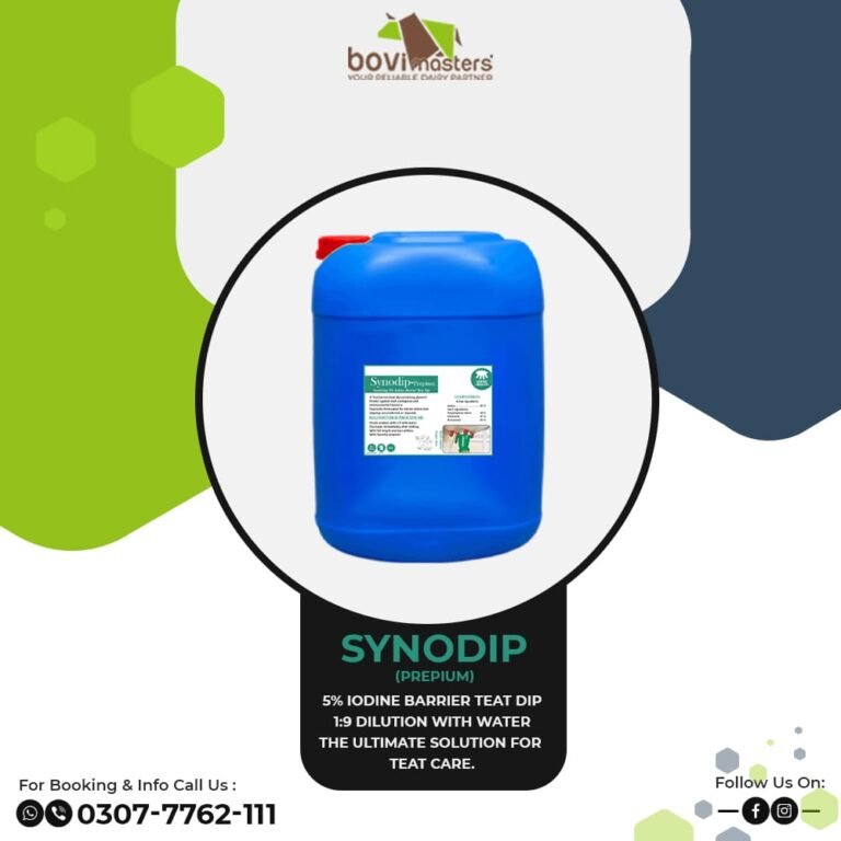 We provide Synodip-Premium, an iodine-based teat dip ideal for post-milking udder hygiene and mastitis prevention. It is diluted at a 1:4 concentration ratio and provides powerful disinfection against harmful bacteria. The product should be prepared for use according to the dilution instructions indicated on the label. Adequate iodine concentration in it ensures reliable germ control, helping to protect the teat canal from infection after milking. Trusted by dairy farmers, Synodip Premium promotes healthy teats. This makes it an ideal choice for maintaining proper hygiene while improving milk quality on farms of all sizes.